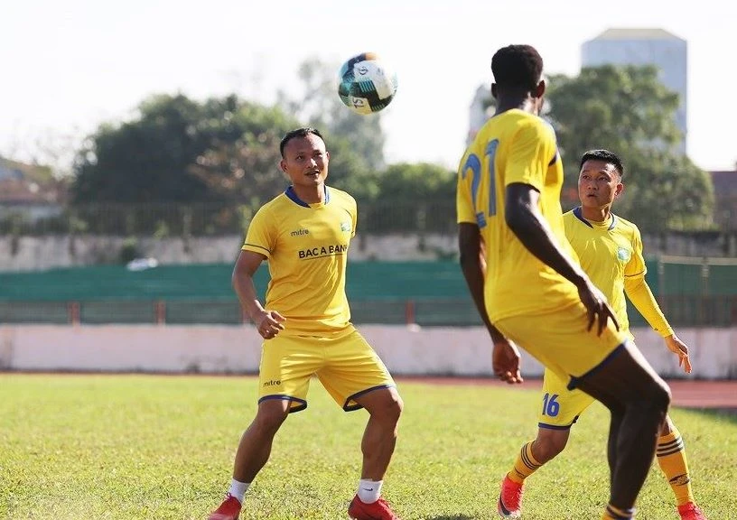 Trọng Hoàng từng ra sân tập cùng SLNA.
