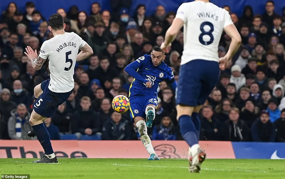 Thế trận nhanh chóng được định đoạt ngay đầu hiệp hai khi Chelsea liên tiếp có hai bàn thắng. Phút 47, trong một pha tấn công tưởng chừng không có gì nguy hiểm, Ziyech đã vẽ nên đường cong hoàn hảo lập siêu phẩm, cú ra chân ngoài vòng cấm của Ziyech đưa bóng lượn hình cầu vồng vào góc cao khung thành trước cái nhìn chôn chân bất lực của thủ môn Lloris. 1-0 cho Chelsea.