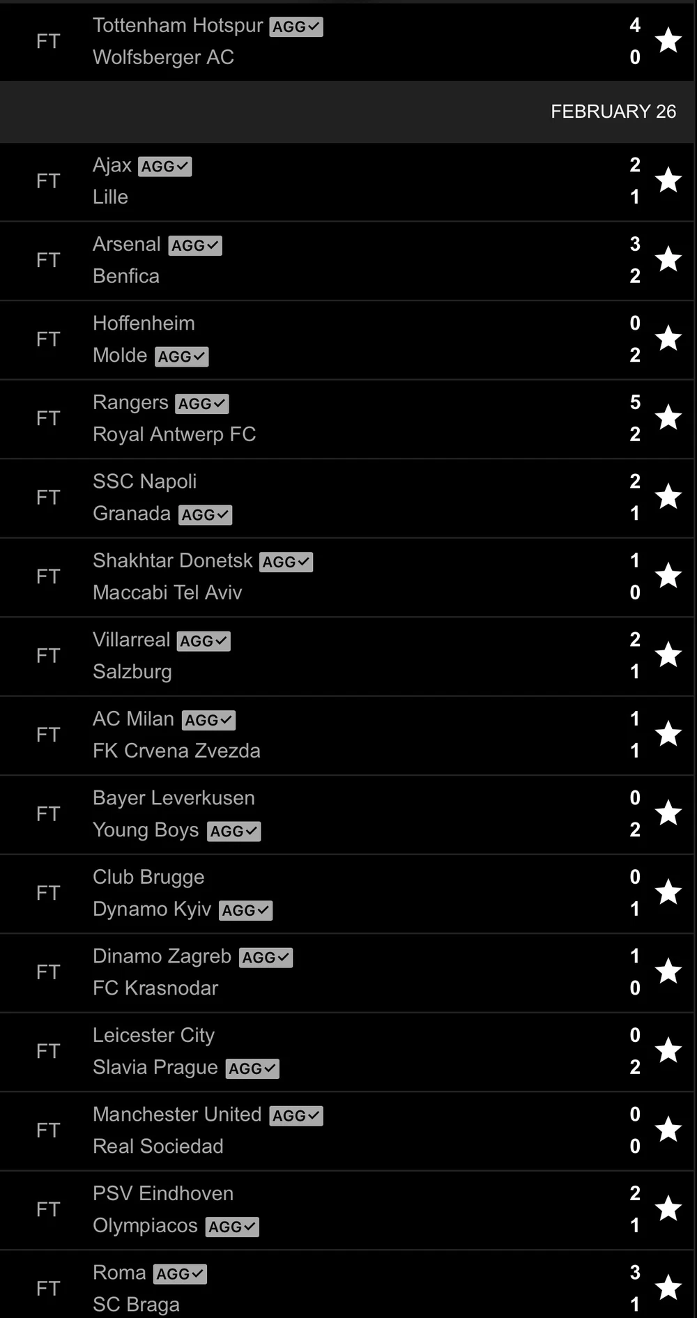 Lượt về vòng 32 đội Europa League chứng kiến nhiều bất ngờ khi MU hoà Real Sociedad với tỷ số 0-0 tại Old Trafford, Leicester City chính thức chia tay giải đấu sau khi để Salavia Prague đánh bại 2-0 ngay tại sân King Power. Arsenal mặc dù có được tấm vé đi tiếp, nhưng “Pháo thủ” có trận đấu vô cùng khó khăn khi phải đợi đến những phút cuối cùng mới có thể đi tiếp nhờ bàn thắng của Aubameyang.
