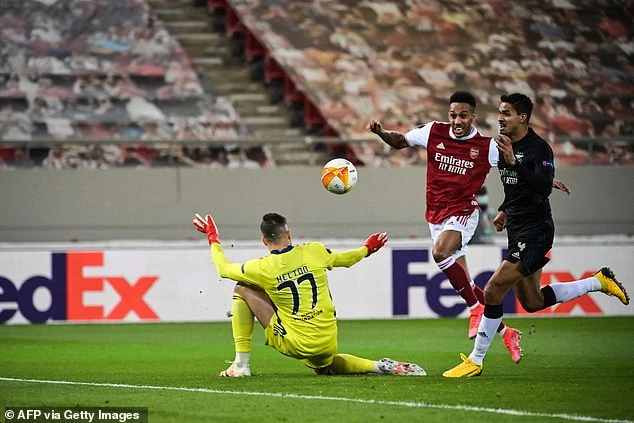 Mặc dù đang hoà 2-2 Benfica, nhưng Arsenal sẽ bị loại theo luật bàn thắng sân khách nếu kết quả này giữ nguyên. Tuy nhiên ở những phút cuối cùng, Aubameyang sắm vai người hùng để ghi bàn thắng quyết định ở phút 87, giúp Arsenal giành chiến thắng với tỷ số 3-2. Giành chiến thắng với tỷ số 3-2, Arsenal đi tiếp vào vòng 16 đội khi đánh bại Benfica với tổng tỷ số 4-3 sau hai lượt trận.