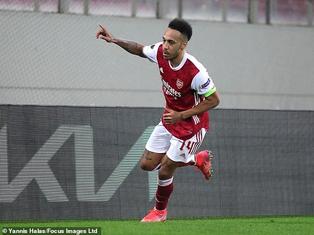 Bàn thắng cuối trận của Aubameyang mang về chiếc vé vào vòng trong cho Arsenal. Ảnh: Getty Images.