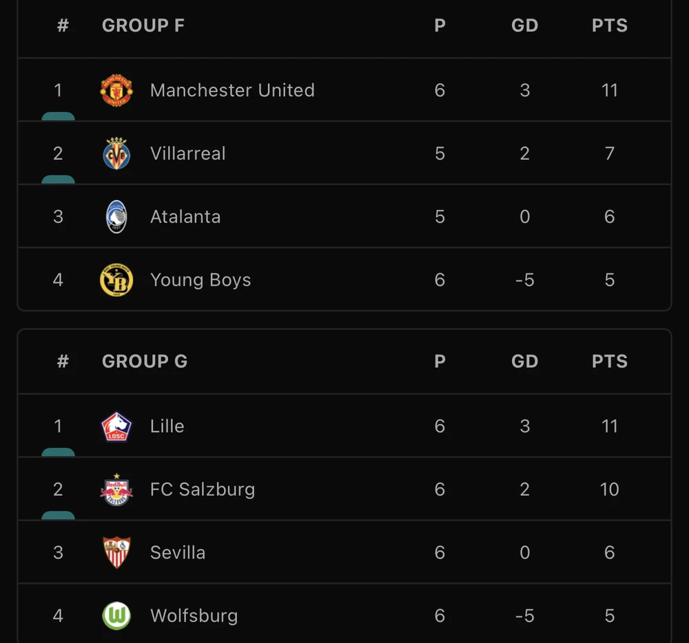 Hai trận đấu cuối của bảng G có kết quả Salzburg thắng Sevilla 1-0 và Lille đánh bại chủ nhà Wolfsburg với tỷ số 3-1. Kết thúc vòng bảng, hai đội giành quyền đi tiếp vào vòng 16 đội của bảng đấu này là Lille với 11 điểm đứng đầu bảng và Salzburg nhì bảng với 10 điểm, Sevilla xuống chơi Europa League kết thúc vòng bảng với vị trí thứ ba khi có 6 điểm.