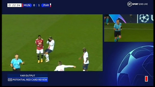 Sau khi xem lại VAR, trọng tài người Ý, Saniele Orsato chỉ phạt thẻ vàng Fred. Nhưng ở hiệp 2, Fred phạm lỗi với cầu thủ cũ của MU, Ander Herrera và phải nhận thẻ vàng thứ hai rời sân trong bối cảnh MU rất cần bàn thắng để gỡ hòa.