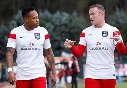 Clyne (trái) có nhiệm vụ ngăn cản người đồng đội trong tuyển Anh Rooney ghi bàn vào lưới Liverpool cuối tuần này.