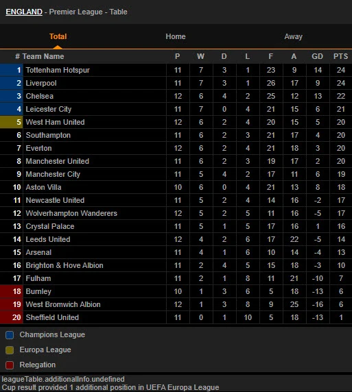 Sau trận này, MU và Man City đều tuột dốc “không phanh” trên bảng xếp hạng Premier League. MU từ thứ 5 xuống thứ 8 với 20 điểm, Man City từ thứ 6 xuống thứ 9 với 19 điểm.