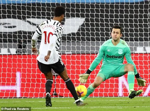 Rashford ghi bàn thứ ba cho MU. ẢNH: REUTERS