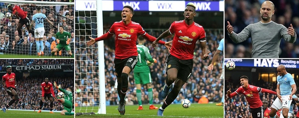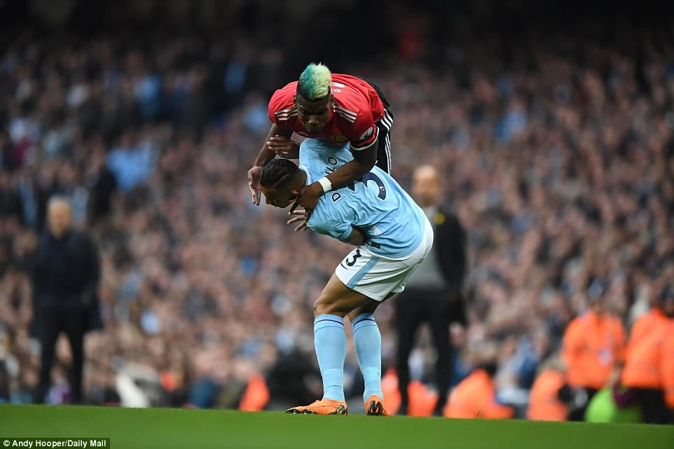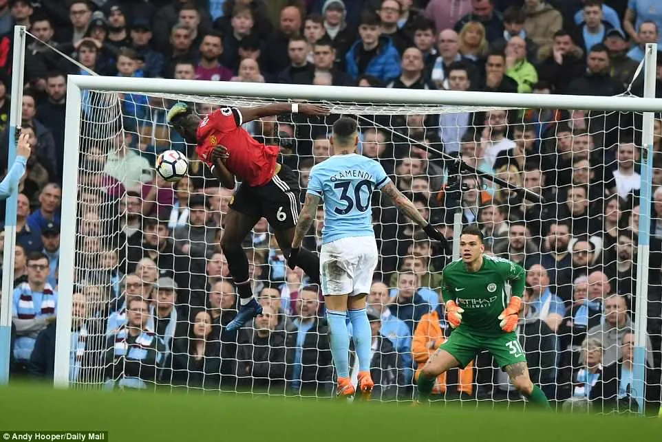 Phút 55, từ pha triển khai lên bóng rất nhanh của MU, Sanchez câu bóng vào loại bỏ cả hàng phòng ngự Man City cho Pogba băng lên đánh đầu hiểm vào góc trái san bằng cách biệt 2-2 cho MU.
