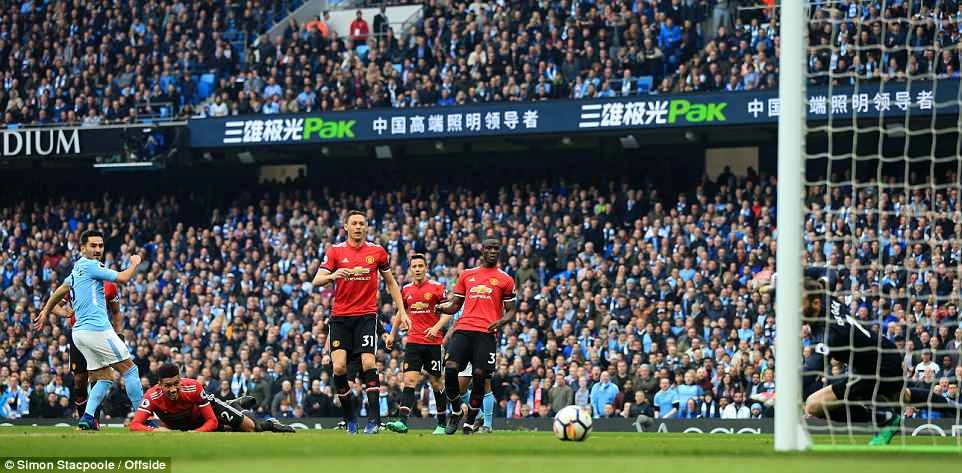 Chỉ 5 phút sau, De Gea phá bóng lên không chuẩn tạo điều kiện cho Man City phản công cực nhanh, để rồi Ilkay Gundogan xử lý bóng qua Matic tung cú dứt điểm chìm vào góc lưới nâng tỉ số lên 2-0.