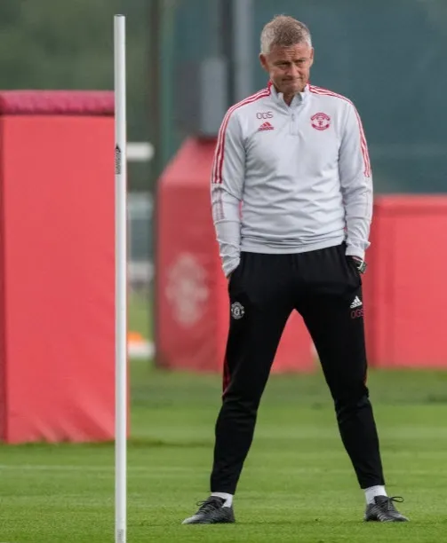 Solskjaer đăm chiêu trong buổi tập của MU ở trung tâm huấn luyện Carrington. ẢNH: MAN UTD