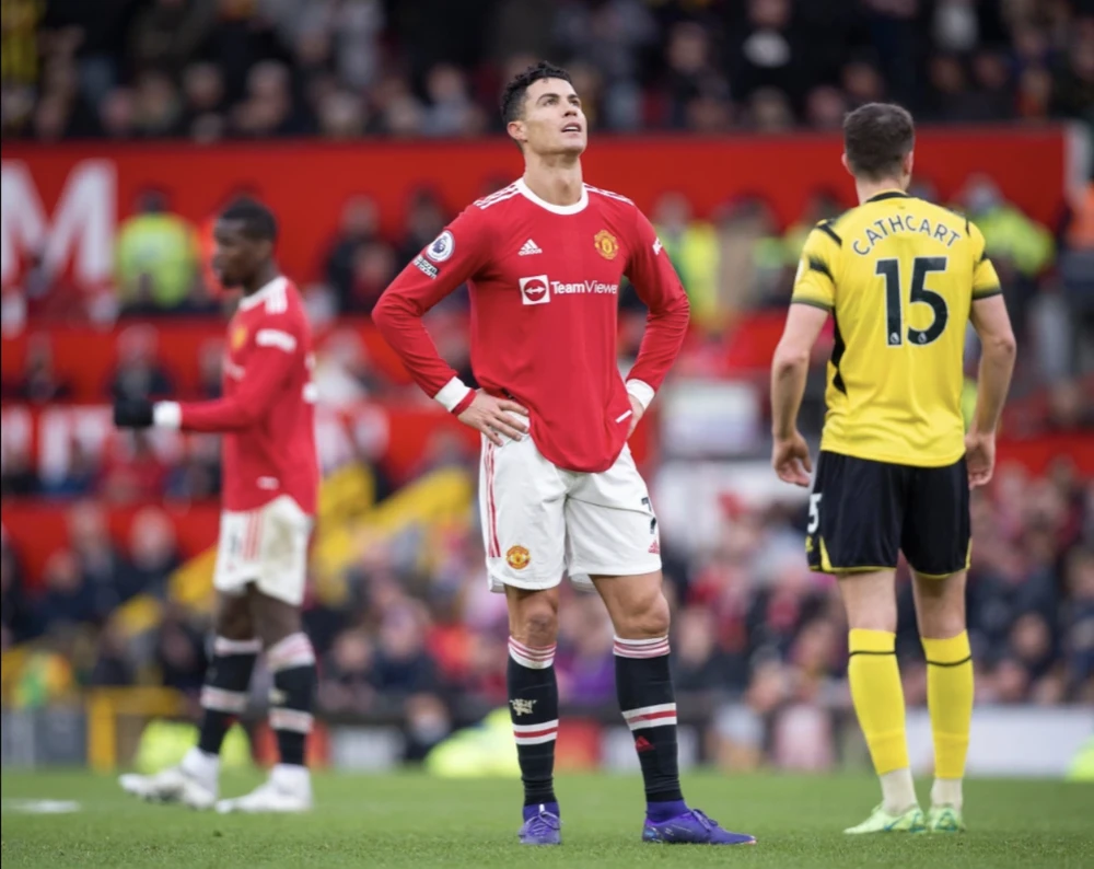 Ronaldo thất vọng trong trận Man United hòa Watford 0-0. ẢNH: GETTY