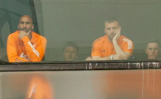 Các thành viên của MU như Luke Shaw, Carrick bên trong khách sạn Lowry với ánh mắt buồn bã. ẢNH: REUTERS