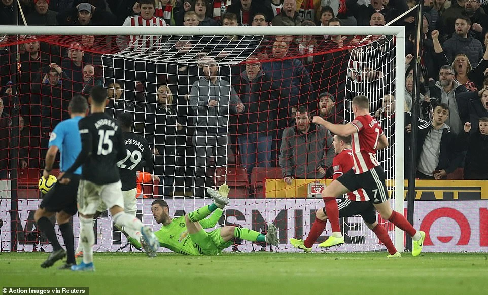Trước lối chơi bùng nổ của chủ nhà Sheffield United, lưới của thủ môn De Gea cũng phải rung lên ở phút 19. Từ tình huống trung vệ Phil Jones để mất bóng nguy hiểm ngay sát vòng cấm, tiền đạo Mousset cướp được bóng, rồi xâm nhập vòng cấm trước khi trả bóng ngược về cho Lundstram băng vào dứt điểm. Lần này De Gea tuy cản phá thành công cú sút của Lundstram nhưng đành chịu trận trước pha đệm bóng cận thành của John Fleck.