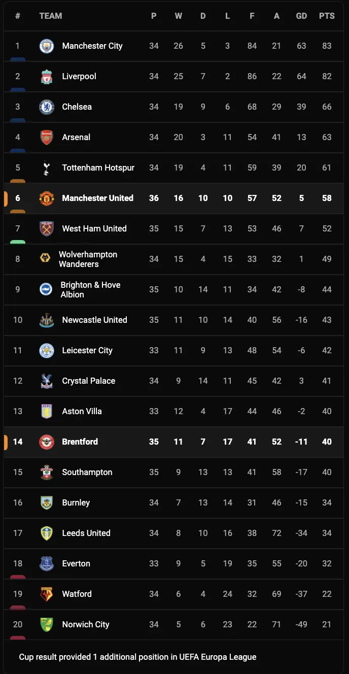 Vòng 36 Premier League, Manchester United chơi trận cuối cùng của mùa giải trên sân nhà Old Trafford tiếp Brentford.