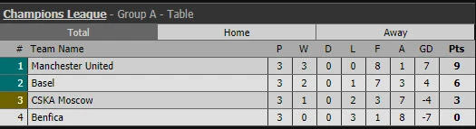 Ở trận còn lại, CSKA Moscow thất thủ 0-2 ngay trên sân nhà trước Basel. Như vậy Basel xếp nhì bảng có 6 điểm, còn CSKA Moscow thứ ba có 3 điểm.