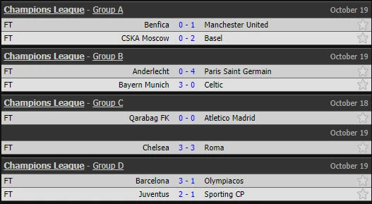 Ở các trận đấu Champions League rạng sáng nay (19/10), hầu hết các “ông lớn” đều giành thắng lợi dễ dàng trước những đội bị đánh giá là yếu hơn.