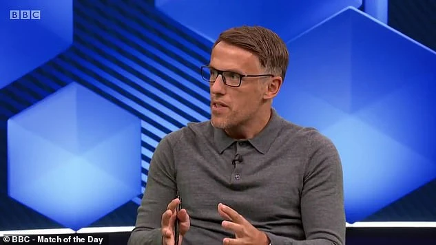 Cựu huyền thoại MU, Phil Neville bình luận trận đấu trên kênh BBC. ẢNH: BBC