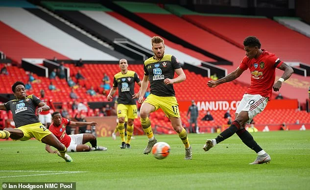 Thoát được bàn thua, Southampton bất ngờ “dội gáo nước lạnh” lên thầy trò HLV Solskjaer với bàn thắng vươn lên dẫn trước ở phút 12. Từ tình huống để mất bóng vô cùng nguy hiểm của Pogba trước vòng cấm, các cầu thủ của Southampton nhanh chóng bắt cơ hội, Redmond có pha tạt bóng vừa tầm cho Armstrong dứt điểm cận thành để Southampton vươn lên dẫn trước 1-0.