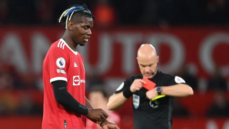 Pogba nhận thẻ đỏ trong trận đấu với Liverpool. ẢNH: GETTY