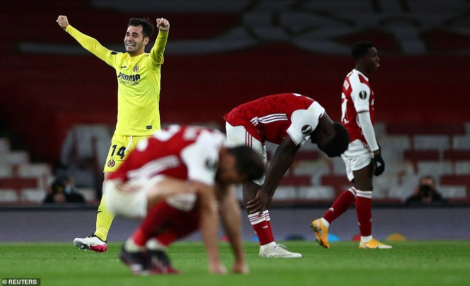 Hoà không bàn thắng trên sân nhà trước Villarreal, Arsenal không thể vào chơi trận chung kết Europa League. Ảnh: Reuters.