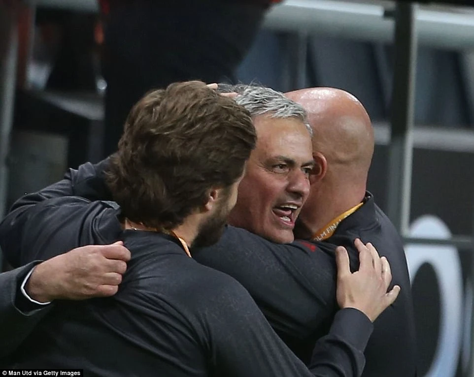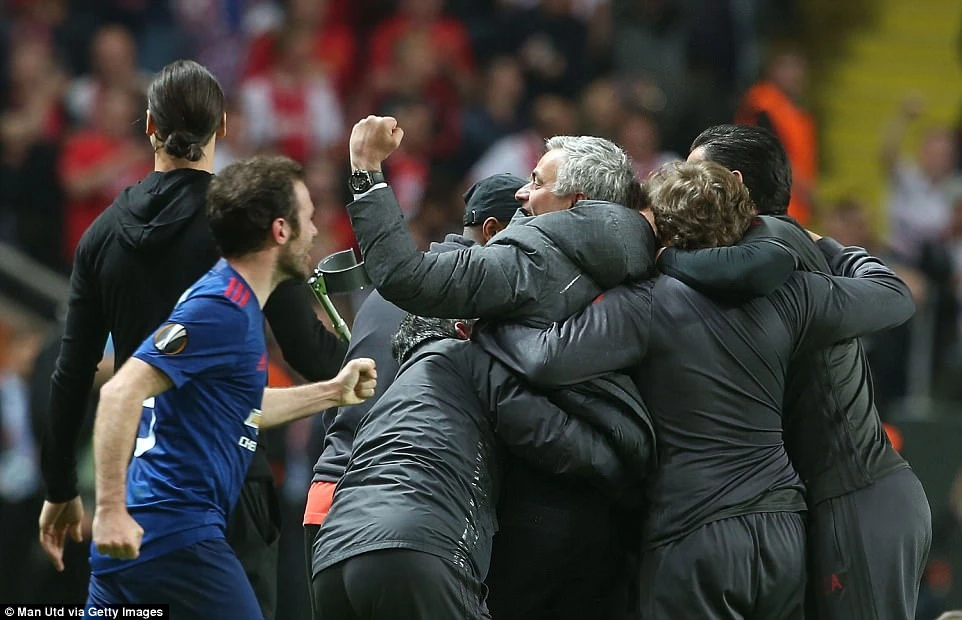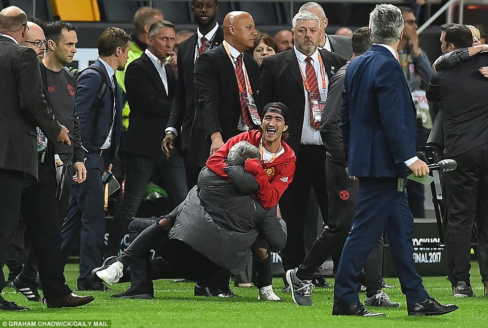 Ông mừng muốn rơi nước mắt, ông bắt tay chia sẻ với HLV Ajax, ông chạy đến con trai rồi hai cha con cùng vật nhau nằm lăn trên thảm cỏ xanh. Hai tay Mourinho lúc này nắm chặt lại, lúc thì vòng tay ôm chiếc cúp rồi hôn lên nó, lúc thì vòng tay ôm từng cầu thủ MU như người cha ôm những đứa con đã giúp mình vượt qua gánh nặng.