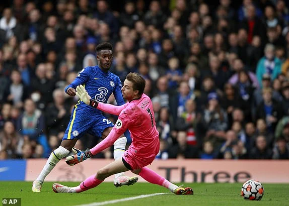 Hudson-Odoi và Reece James cùng ghi bàn giúp Chelsea khép lại hiệp một với lợi thế dẫn trước 3-0. Ảnh: AP.