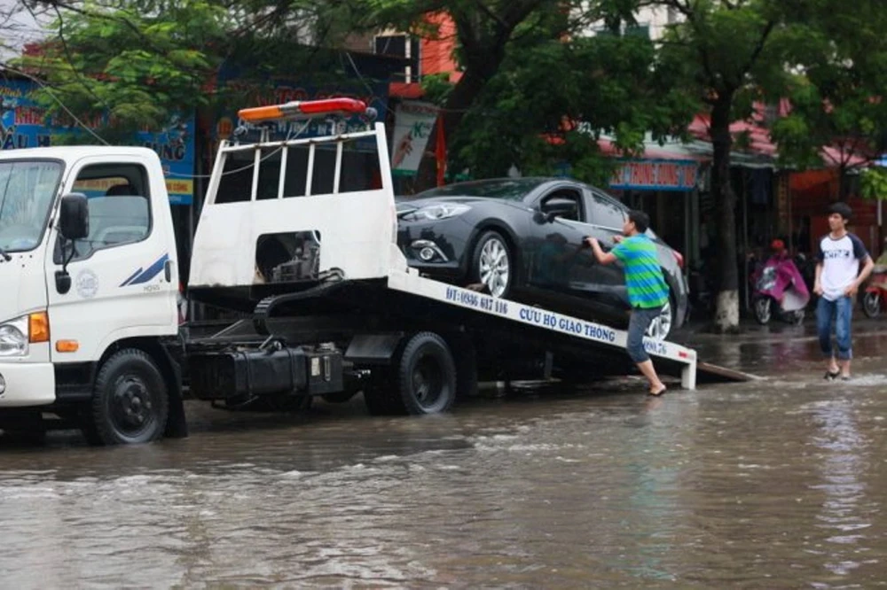 Xe ngập nước đừng cố gắng nổ máy, hãy gọi xe cứu hộ. Ảnh: Internet