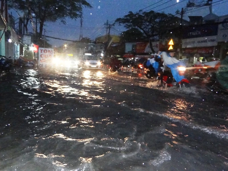 Quận Gò Vấp dù có cốt nền cao nhưng một số tuyến đường vẫn bị ngập do nước không thoát kịp.