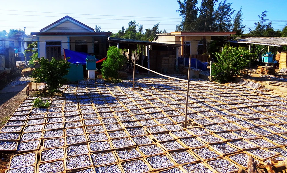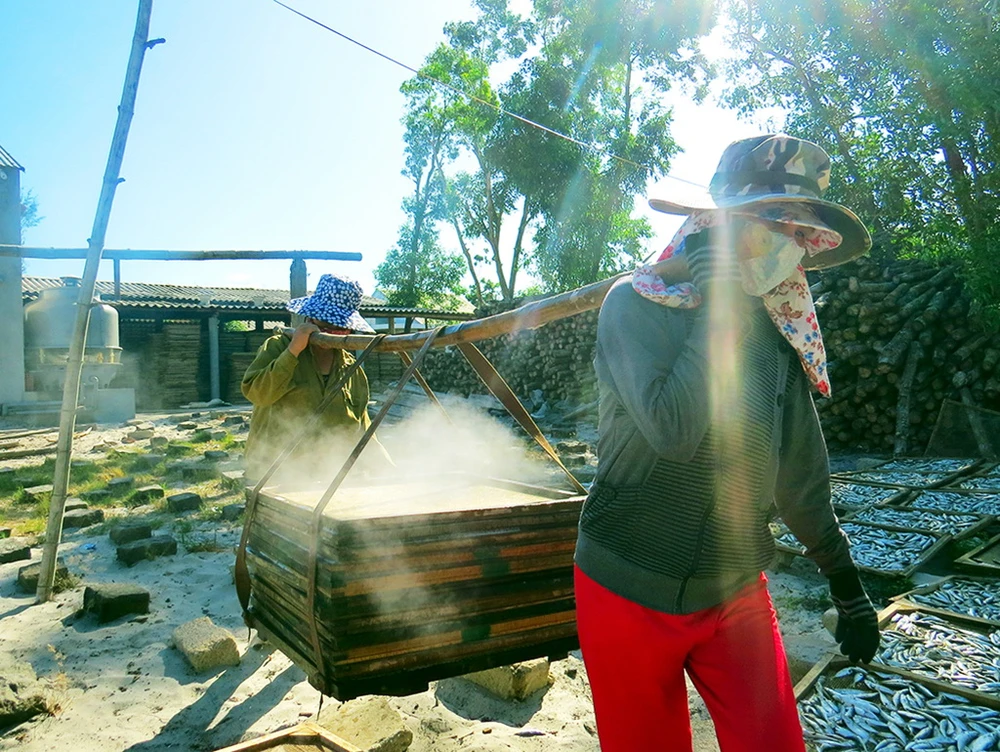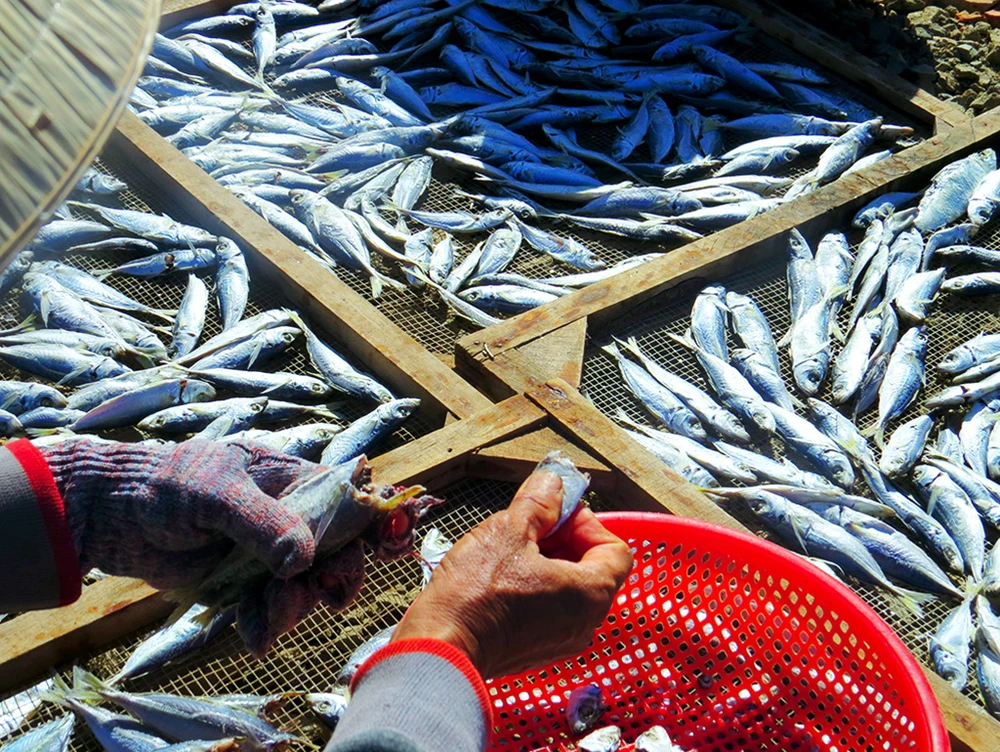 Giữa trời nắng và gió như gắp than đổ vào lồng ngực của khách bộ hành, nhưng ven đường, nơi lò hấp, đôi tay vén khéo của người đàn ông, phụ nữ vùng biển vẫn tất bật với từng mẻ cá khô đượm mùi biển cả. Để từ đó, từng con cá theo bước chân của khách thương hồ di vạn nẻo đường xa.