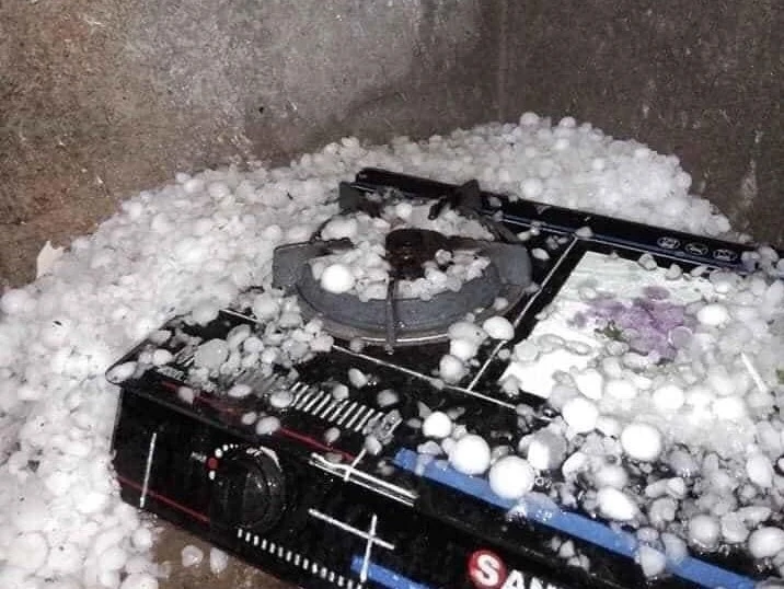 Mưa đá làm vỡ ngói, rơi vào nhà dân tại Lào Cai tối 17-3. Ảnh: NGÂN HÀ
