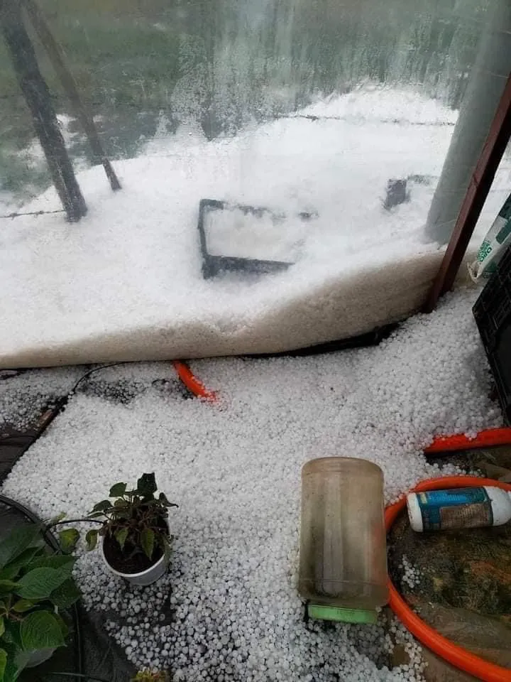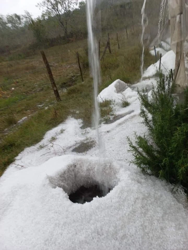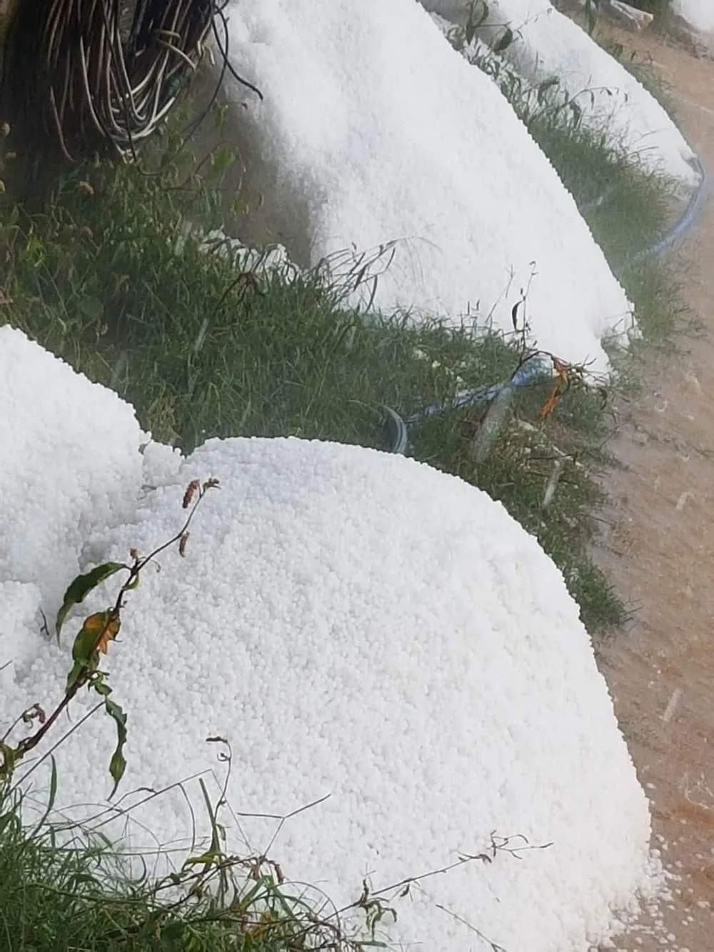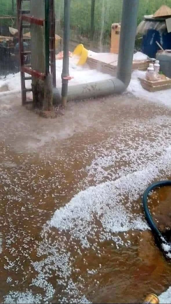 Người dân ở địa phương này cho hay, cơn mưa bắt đầu từ khoảng 3 giờ chiều kèm theo đá trút xuống với mật độ dày đặc.
