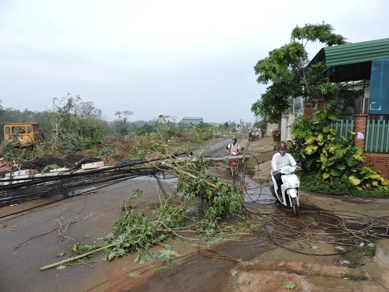 Rất may thời điểm xảy ra giông lốc làm gãy trụ điện, trên đường Y Moal không có người và phương tiện qua lại không xảy ra thương vong.