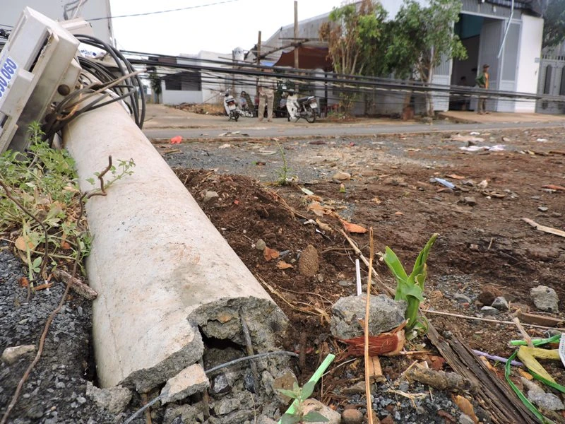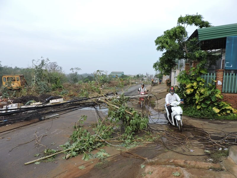 Cột điện bị lốc quật gãy trên đường Y Moan