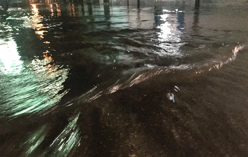 Nước mưa đổ ồ ạt tạo thành những dòng nước xoáy đổ xuống cống ở TP.HCM. Ảnh: MP