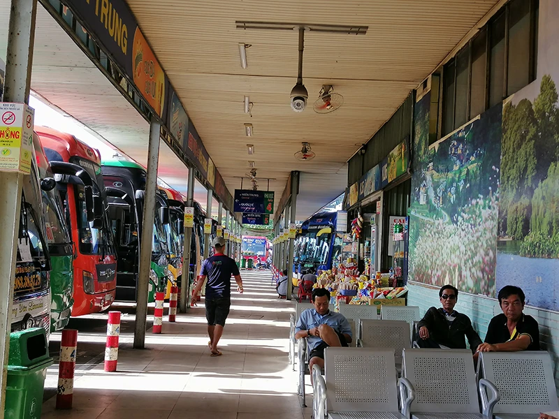 Tại khu vực ra bãi xe khách là sự đối nghịch giữa cảnh đông đúc hành khách lên xe về quê ở những chặng ngắn Ninh Thuận, Bình Thuận, Bà Rịa-Vũng Tàu.. và cảnh đìu hiu vài tài xế, phụ xe ngồi tám chuyện chờ khách ở khu miền Trung, miền Bắc.