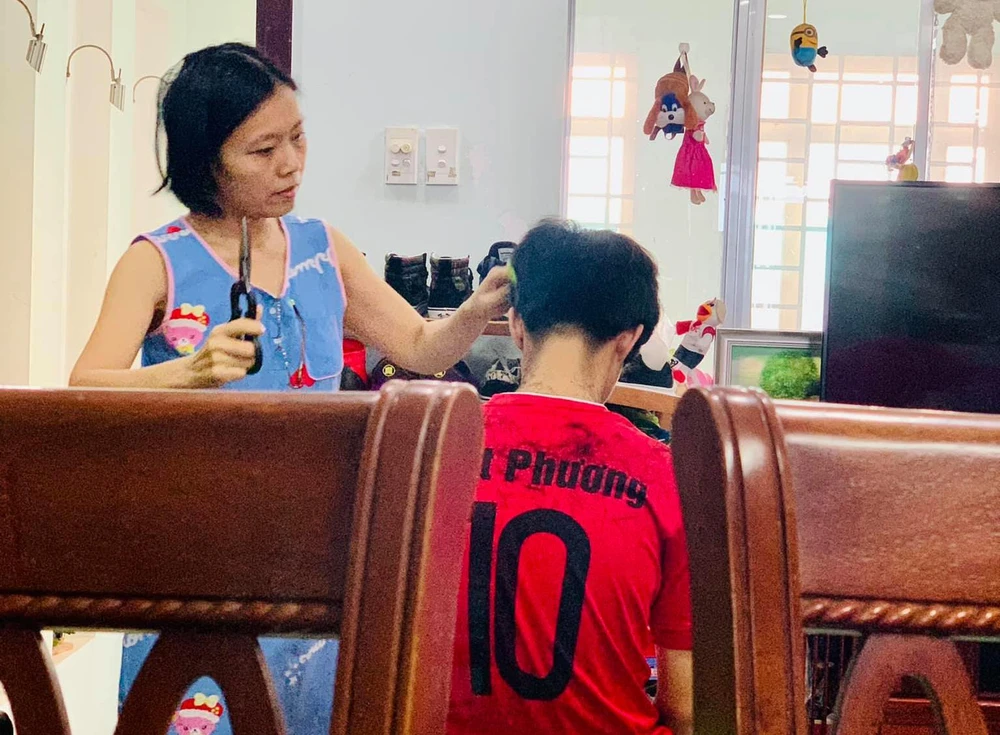 Còn cô Duyên, đang ở trọ quận 8 (TP.HCM) cũng trổ tài cắt tóc cho chồng trong mùa dịch. Cô nói: "Trước kia chồng tôi cứ tóc dài là sẽ ra tiệm để cắt. Giờ dịch vầy đâu có tiệm cắt tóc nào mở cửa đâu, nên tôi mới bảo chồng là thôi để tôi cắt tóc giùm cho".