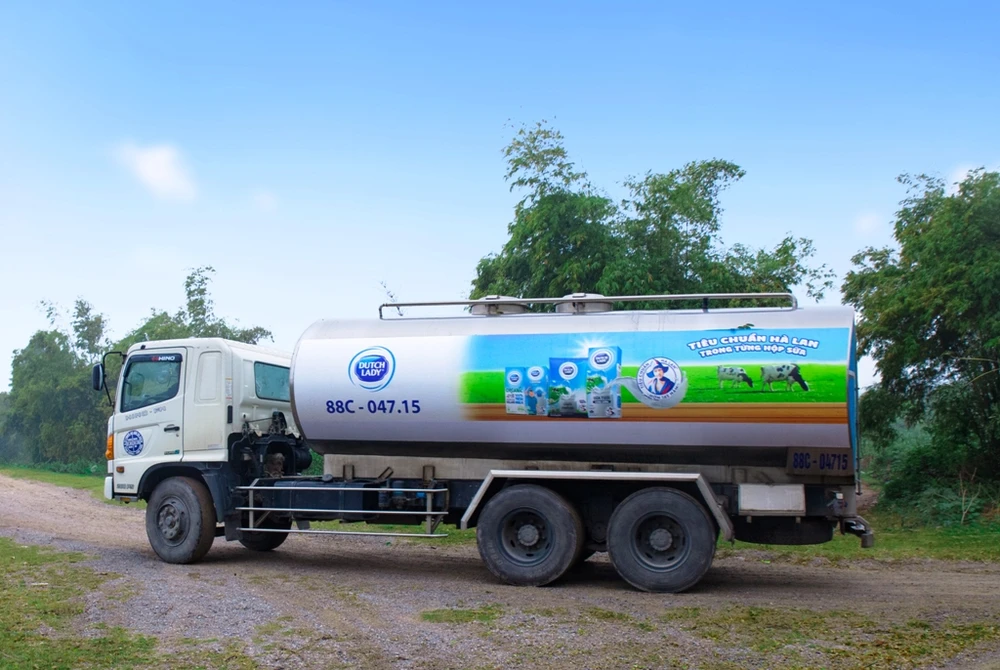 Từng chuyến xe bồn chở sữa nguyên liệu về nhà máy để sản xuất ra sản phẩm sữa Cô Gái Hà Lan an toàn và tươi ngon.
