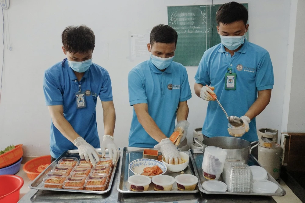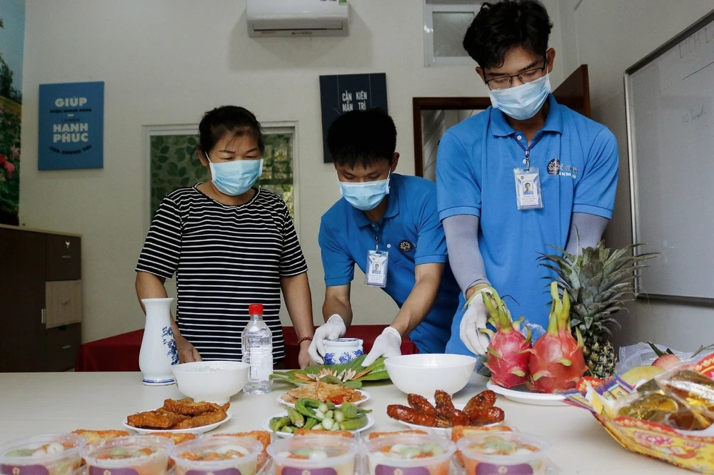 "Chỉ trong vòng 2 giờ đồng hồ, từ khi bên mình nhận đơn, các chị em nội trợ đã có một mâm cỗ nghiêm trang, dâng cúng ông bà mà lại đảm bảo tốt việc phòng dịch COVID-19" - anh Trung nói.