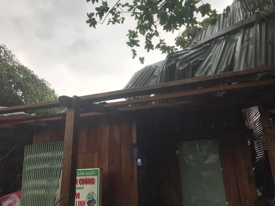 Theo đó, đầu giờ chiều cùng ngày, tại thôn 1 và thôn 2, xã Trà Mai xảy ra mưa giông lớn kèm gió lốc mạnh làm nhiều nhà dân địa phương bị hư hỏng, tốc mái.