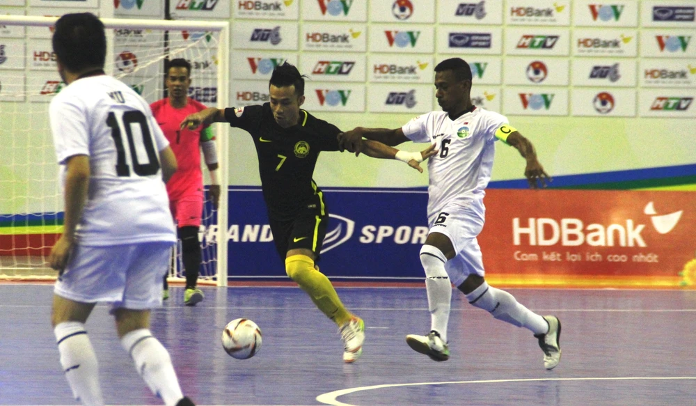 Malaysia (đen) đánh bại Đông Timor 7-2.