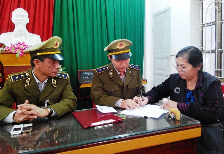 Một người dân nhận tiền lại tiền từ Đội QLTT số 9. Ảnh: ĐT