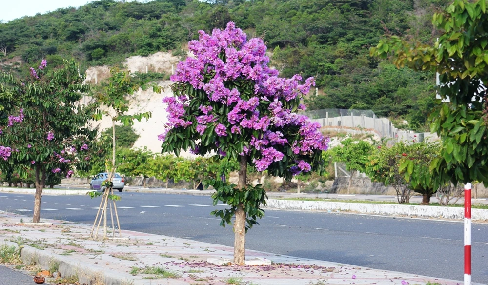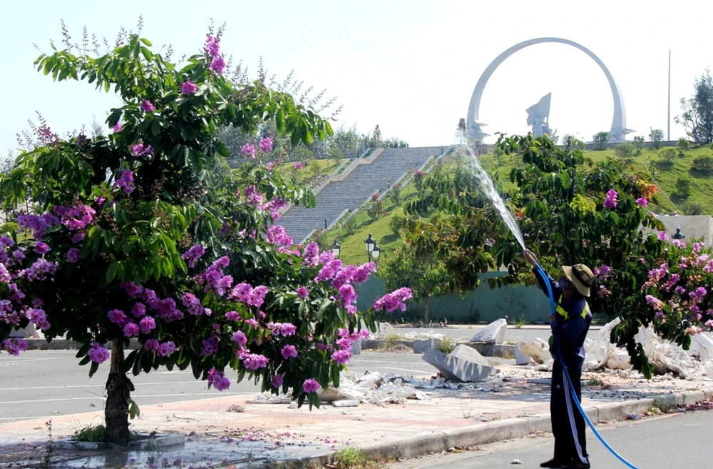 Những hàng cây bằng lăng được chăm sóc chu đáo mỗi ngày.