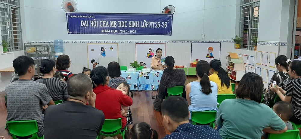 Buổi họp phụ huynh đầu năm học 2020-2021 của lớp nhà trẻ 25 - 36 tháng tại trường mầm non Sơn Ca, Thủ Đức, TP.HCM. Ảnh: THU THỦY