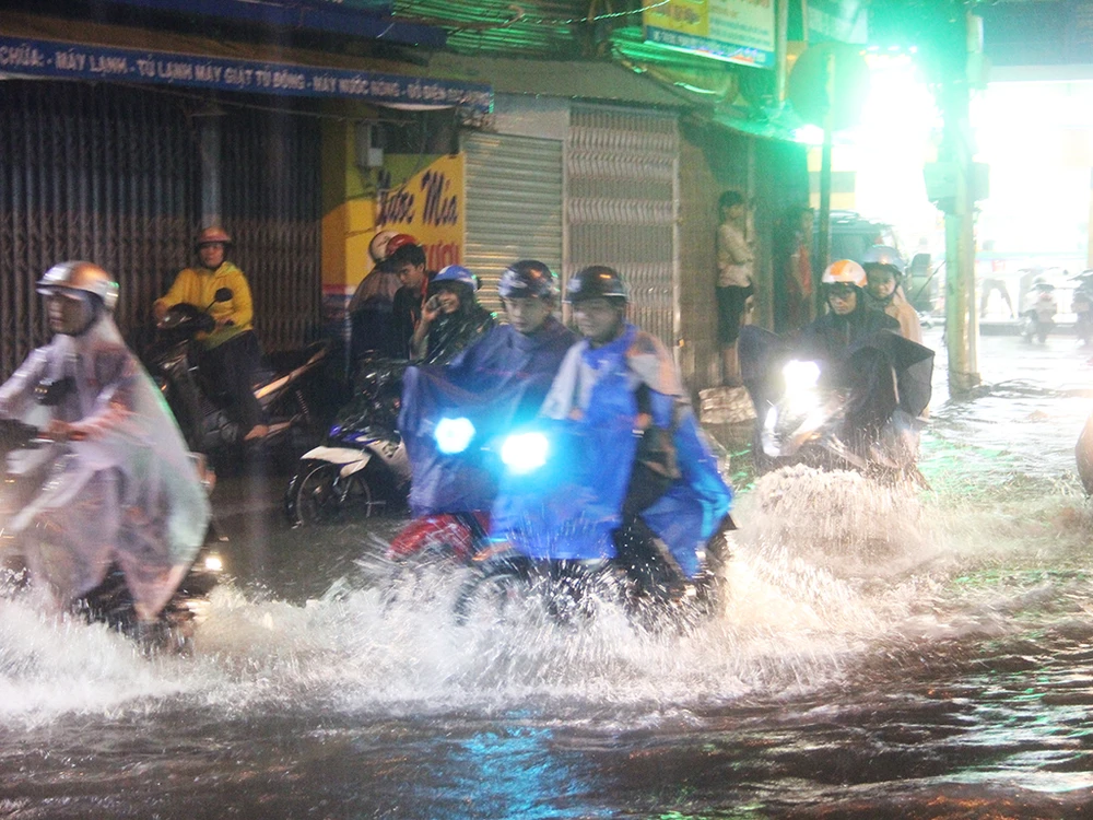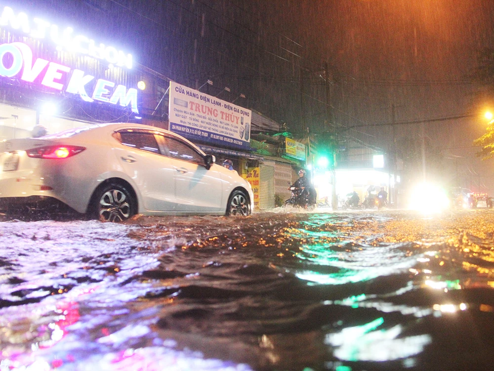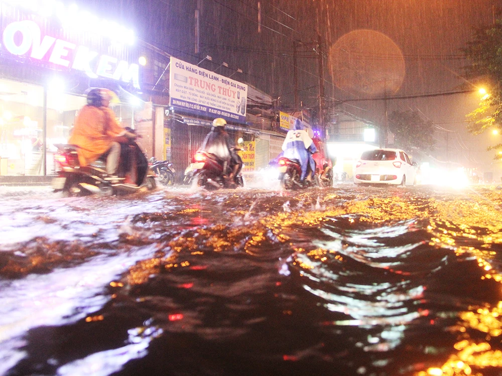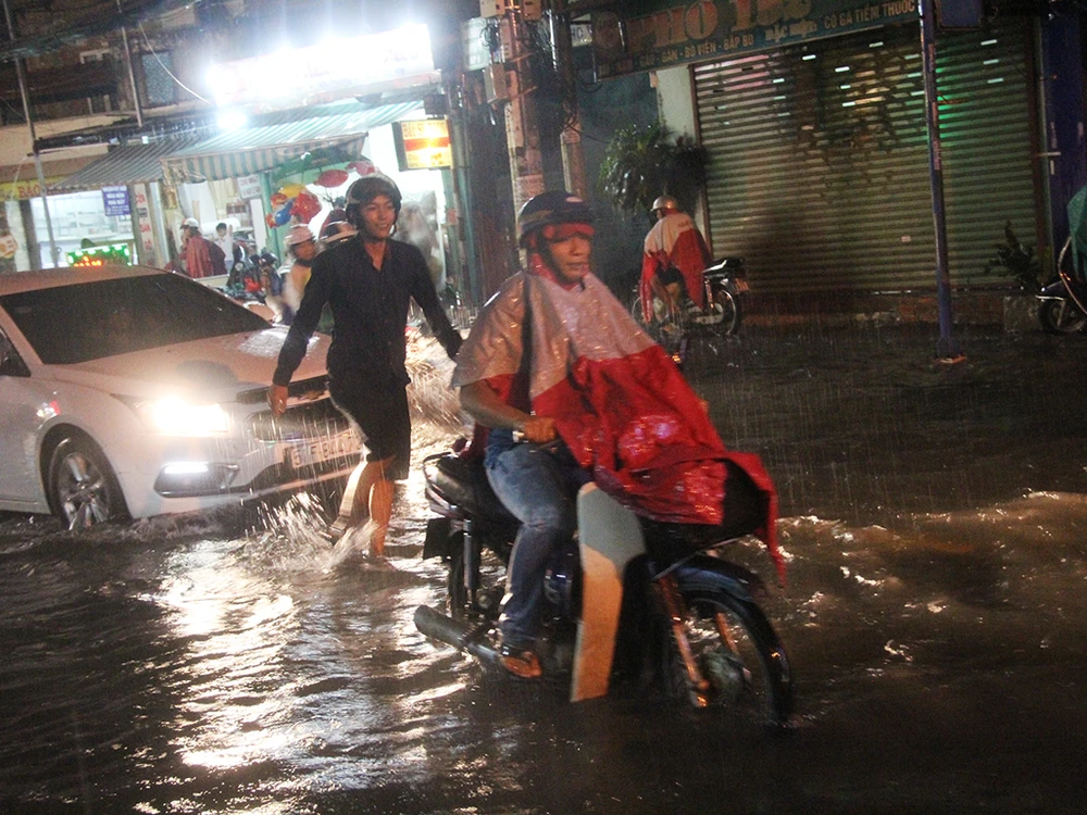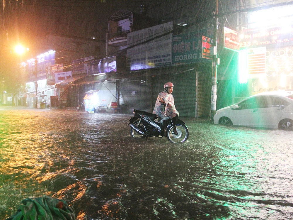 Trận mưa như trút nước đổ xuống nhiều địa bàn quận huyện tại TP.HCM chiều 26-8 khiến hàng loạt tuyến đường bị ngập. Ảnh H. Tâm.