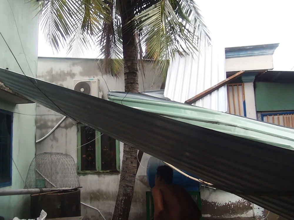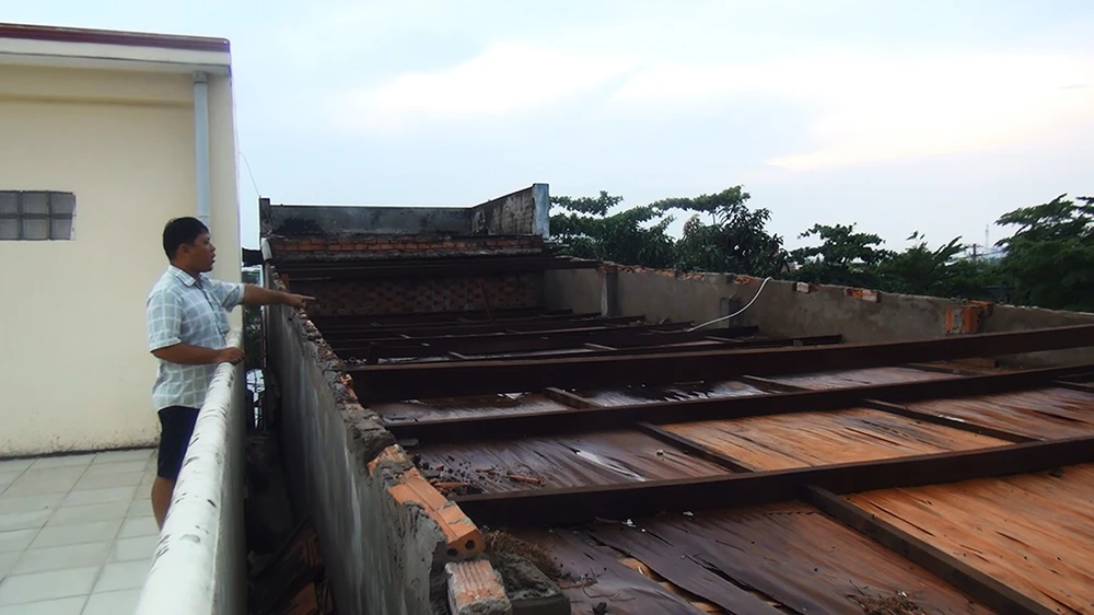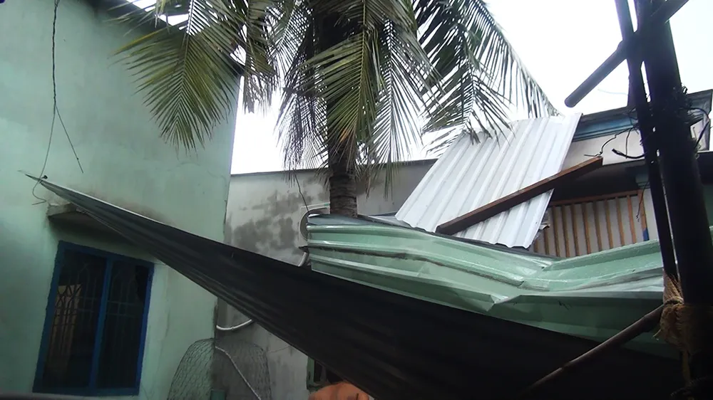 Gió lốc thổi bay hoàn toàn phần mái của một căn nhà ở quận Bình Tân.