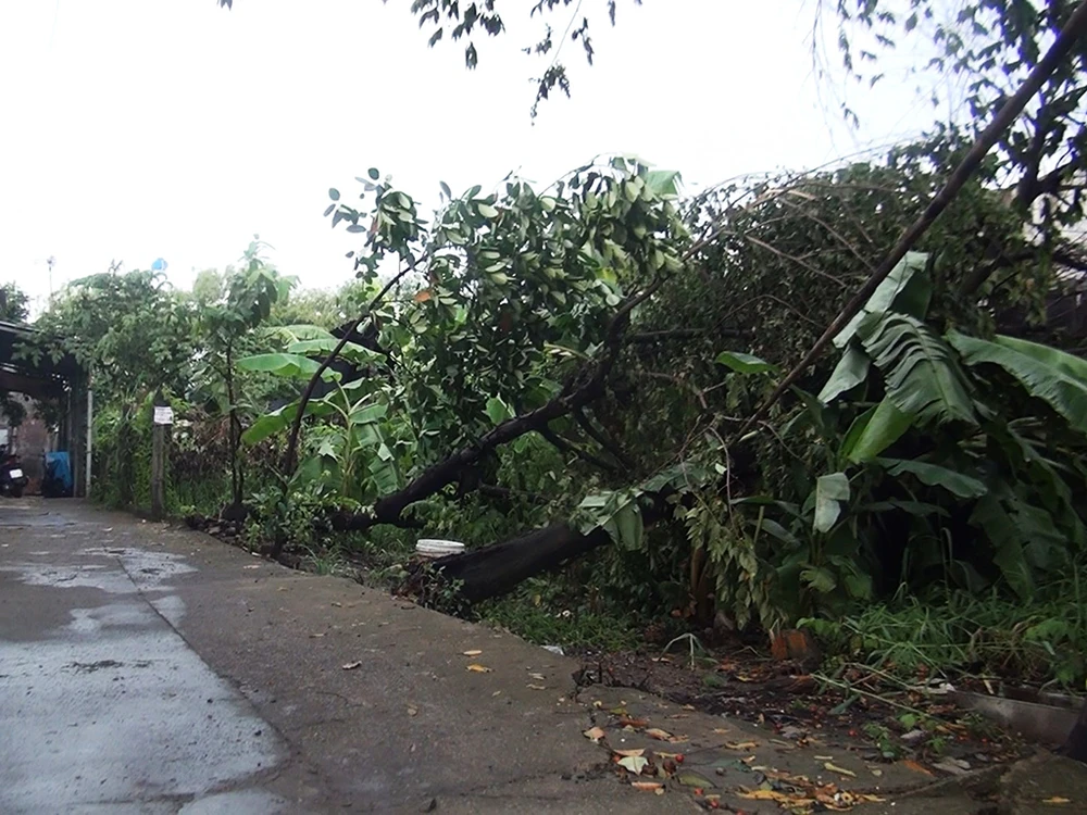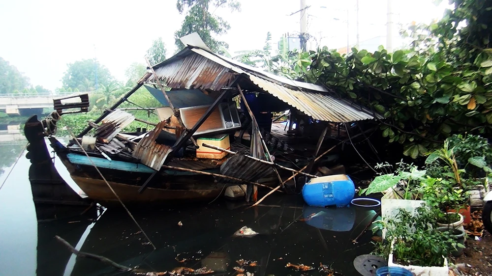 Một cây bàng lớn cũng gãy ngang, đè trúng một chiếc ghe của người dân đang neo ở kênh Tân Tạo (xã Lê Linh Xuân, huyện Bình Chánh) khiến phương tiện này hư hỏng nặng.