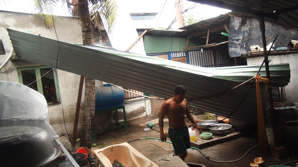 Trong đó, nhiều mái tôn bay thẳng vào căn nhà ở số 13 Nguyễn Đình Kiên (phường Tân Tạo A).