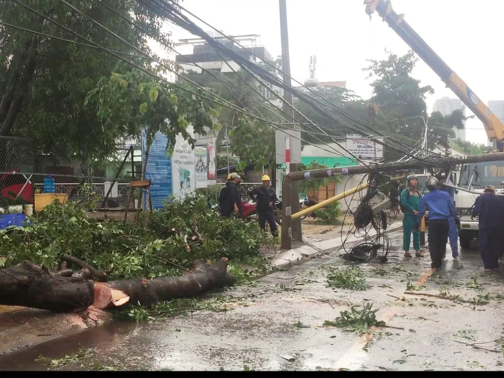 Đến hơn 8 giờ sáng 14-9, lực lượng chức năng quận 2 (TP.HCM) mới xử lý xong hiện trường vụ cây xanh ngã đè gãy cột điện vừa xảy ra trên địa bàn.
