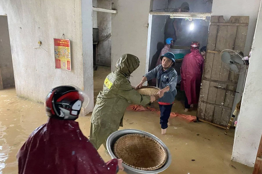 Tại huyện Đô Lương hiện có nhiều nhà bị ngập sâu, người dân đang kê kích tài sản lê cao và chạy tránh lũ trong đêm.