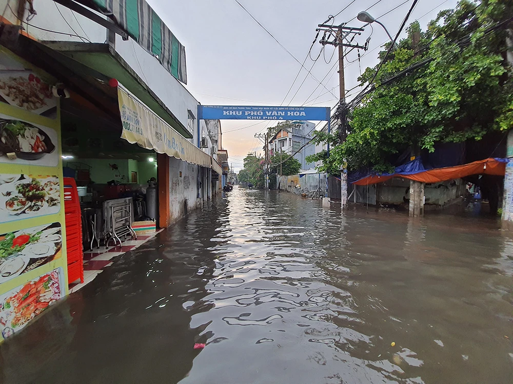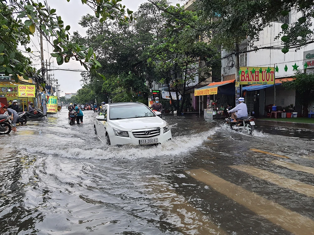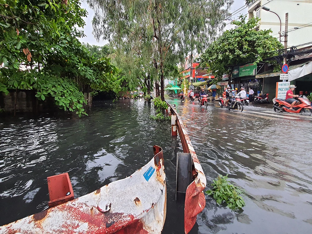 Tương tự, đường Phạm Đức Sơn (quận 8), Tô Ngọc Vân (TP Thủ Đức), Nguyễn Văn Khối (quận Gò Vấp), Tân Hòa Đông (quận 6)... cũng rơi vào tình trạng ngập sâu.