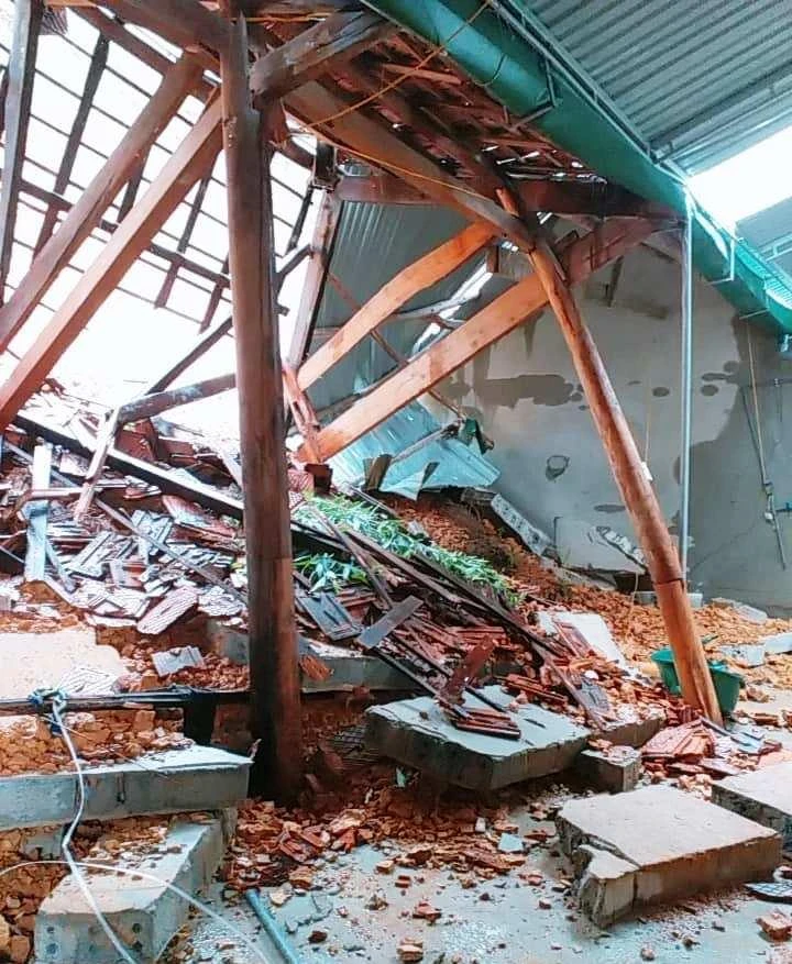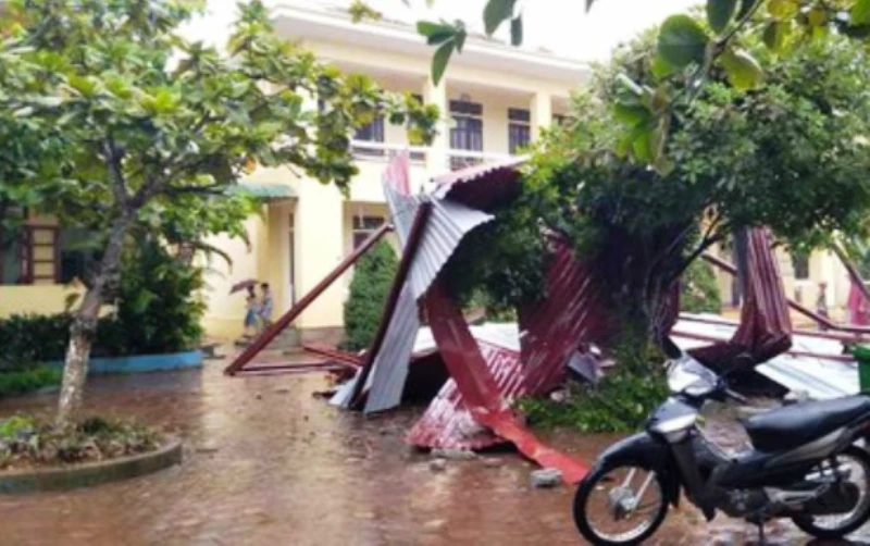 Trường tiểu học Ngọc Sơn (huyện Thạch Hà, Hà Tĩnh) bi tốc mái, hư hỏng.